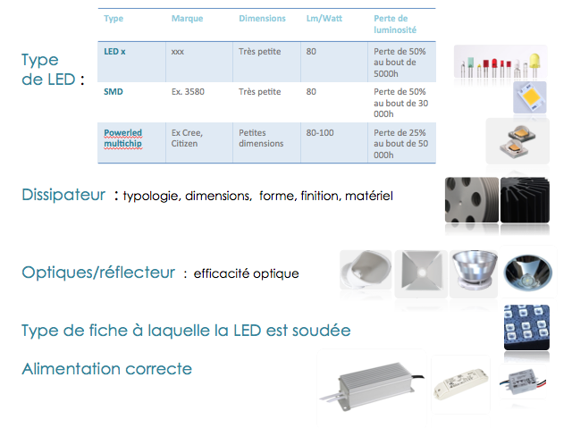 LEDS UTILISEES (Cree, Philips-Luxeon, Citizen, Sharp)